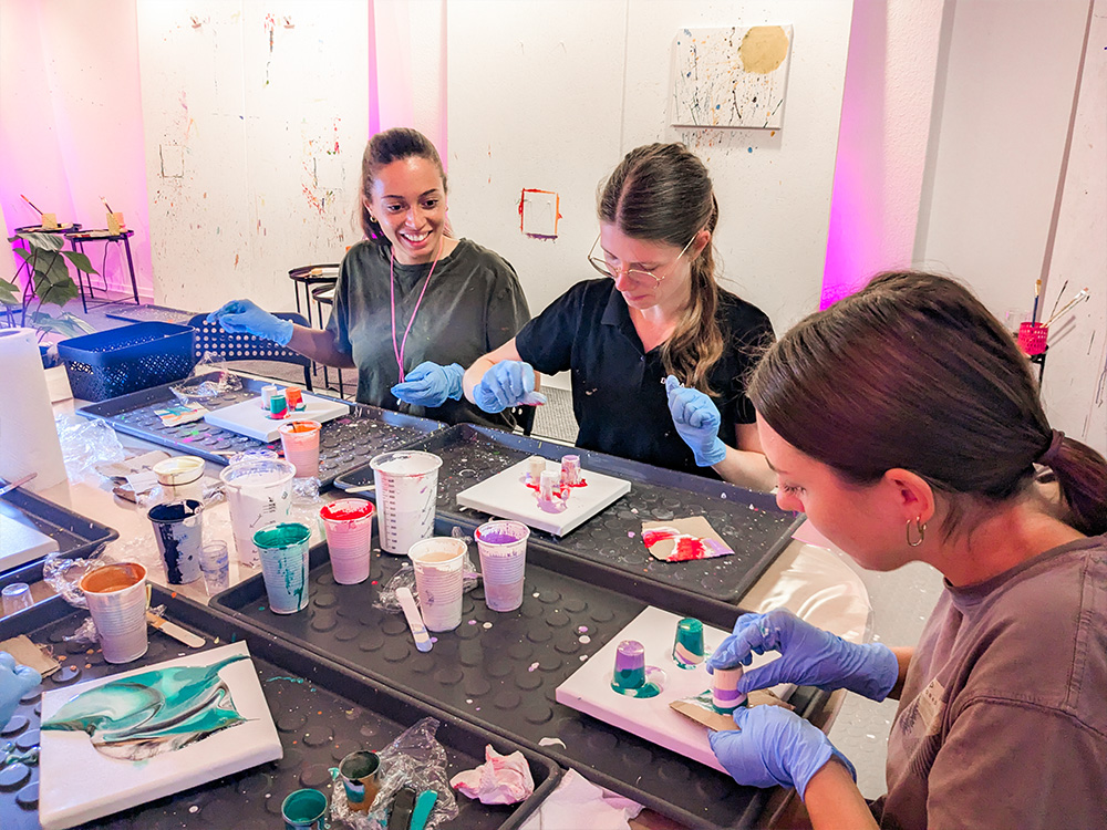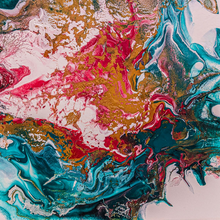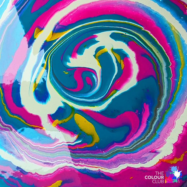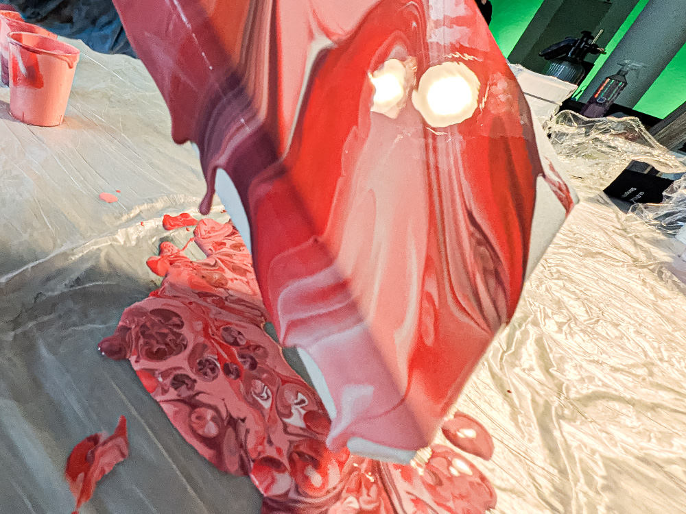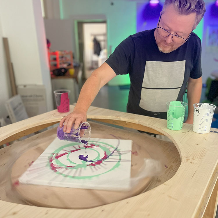 Farben auswählen, gießen, fließen lassen – und erleben wie auf der Leinwand spannende Verläufe und interessante Muster entstehen.
