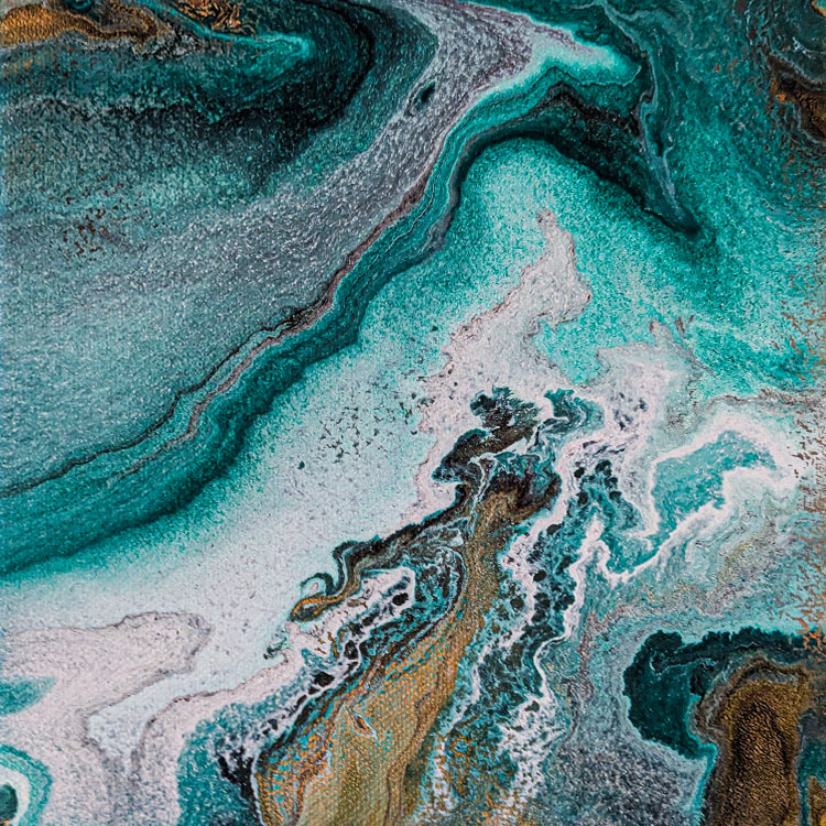 Material: Leuchtende Acrylfarben, kombiniert mit speziellen Pouring-Medien für faszinierende Effekte.