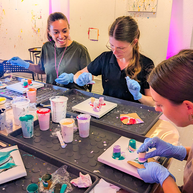 Ihr sucht nach etwas Besonderem? Kein 08/15-Programm, sondern etwas, das Spaß macht, euch zusammenschweißt – und noch lange nachwirkt? Im Colour Club kreiert ihr gemeinsam ein Erlebnis, das euch gehört. Jede Bewegung, jeder Farbtropfen – Ausdruck von euch. Kein Druck, kein Wettbewerb – nur Freude, Ausdruck und Zusammensein.