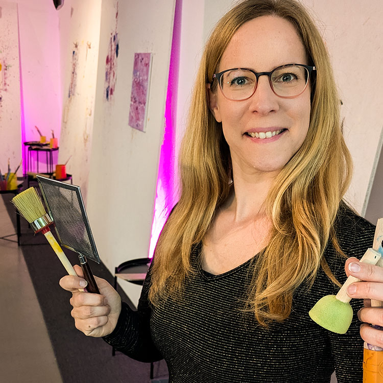 Tauche ein ins Action Painting: intuitiv, befreiend, echt. Vergiss richtig oder falsch, Talent oder „ich war nie so gut in Kunst.“ Ist egal!